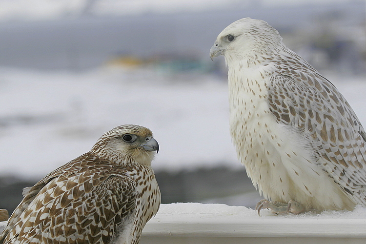 Beskrivelse: jagtfalke holder til hele vinteren omkring Nuuk by og ind imellem sidder de på hustage og i dette tilfælde på en terrasse med udsigt over det foretrukne jagtområde.