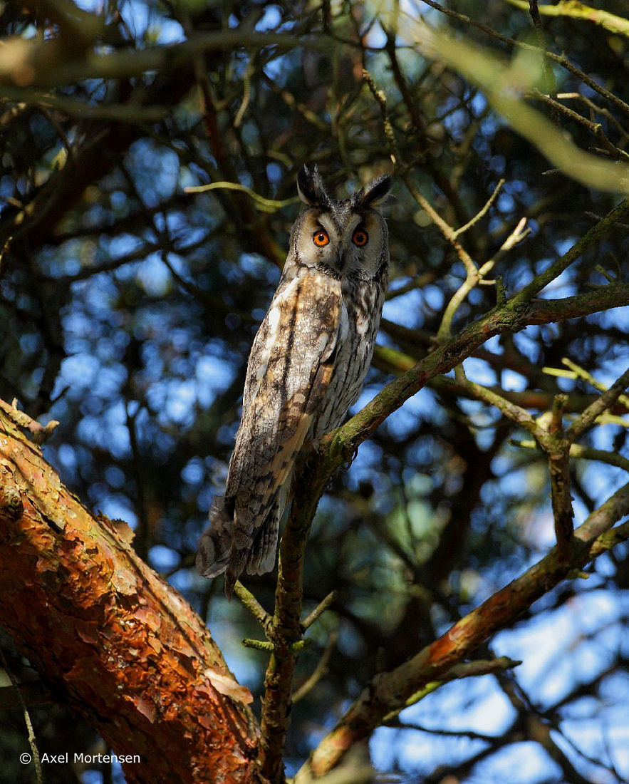 Beskrivelse: Under eftersøgning af vendehals sad denne ugle pludseligt frit fremme og slikkede sol.