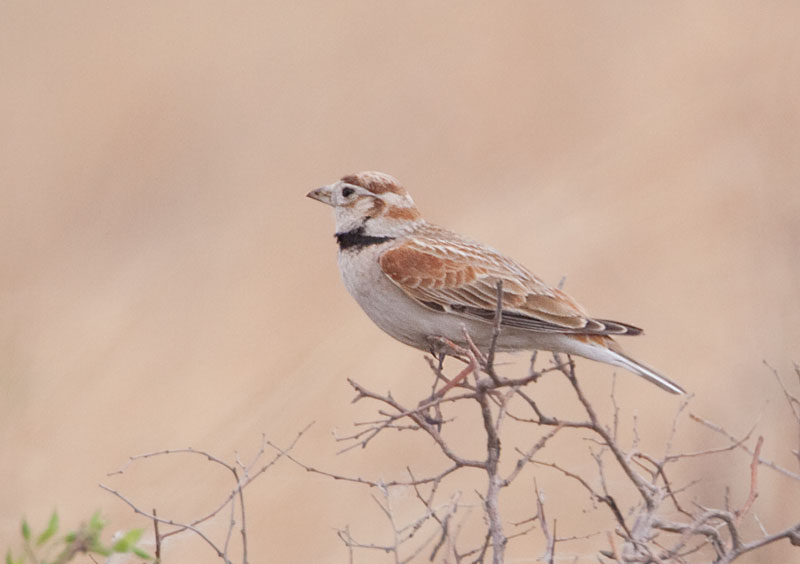 Beskrivelse: Mongolsk Lærke har i flugt en kraftig hvid vingebagkant nærmest som at se en rødben