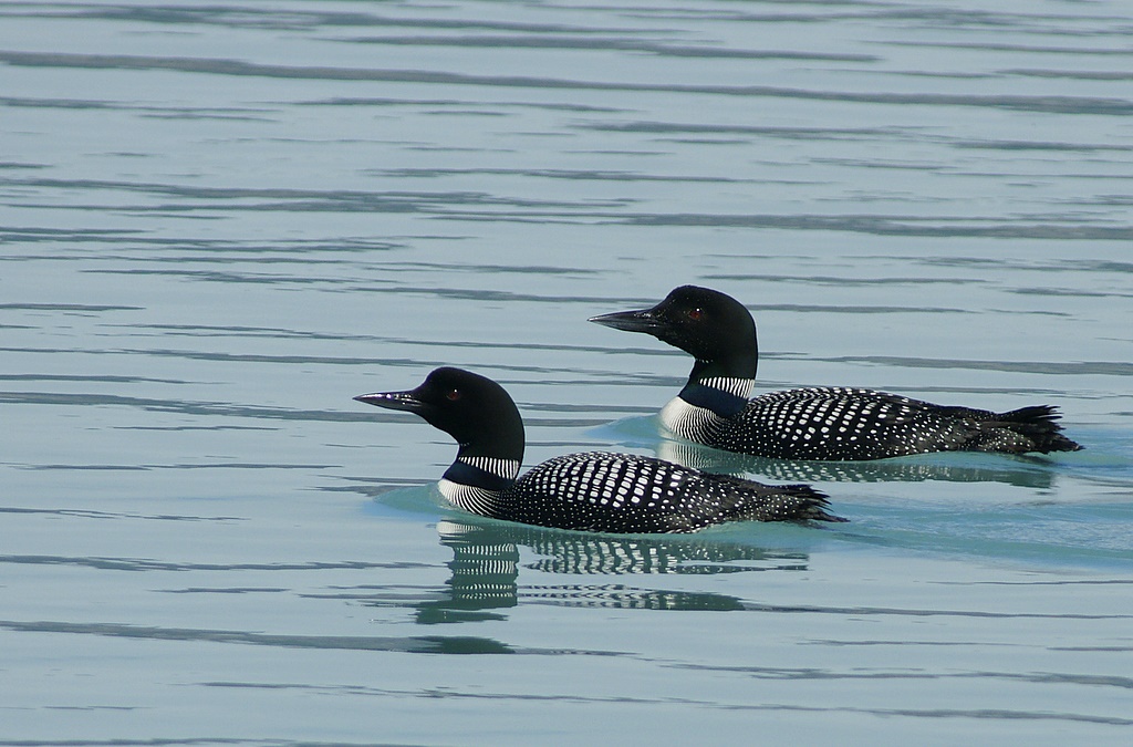 Beskrivelse: I en ellers helt fugledød fjord (25km fra Kangerlussuaq) kom den ene islom svømmende. Efter at ha' rundet en pynt forenedes den med en anden et stykke væk - og jeg løb over klipperne for at få billeder af dem sammen. De kan svømme utroligt langt under vandet.