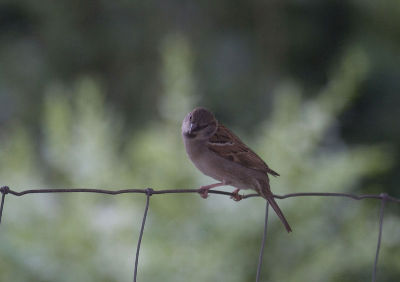 Beskrivelse: Fandt tilfældigt denne spurv i mine forældres have. Jeg bemærkede først at den havde en sort strube og en underlig mørk kind, som en svagt tegnet skovspurv samtidig med øjenbrynsstribe som en gråspurv hun. Jeg fik derfor fundet kameraet frem og skudt nogle billeder under dårlige forhold (kl halv 8 om aftenen under en overdækket terrasse), derfor det lidt underlige lys.