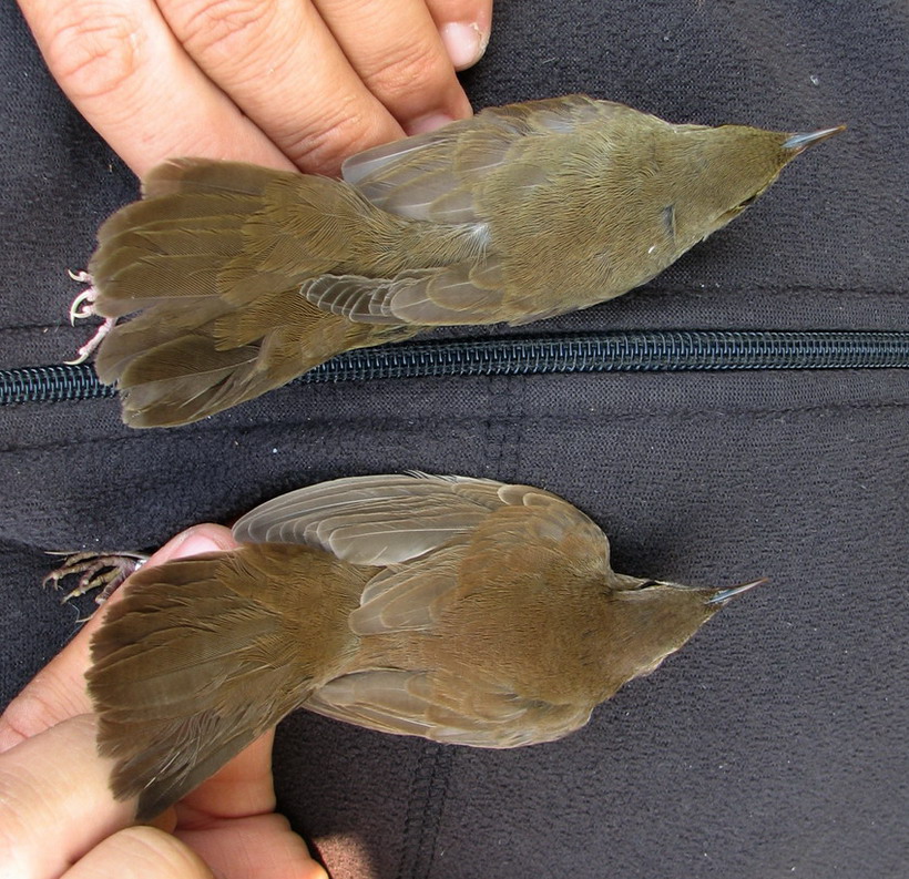 Titel: Comparison between River Warbler and Savi's Warbler (below) upperparts color