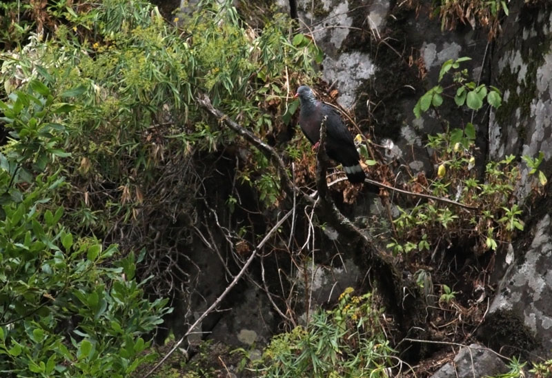 Beskrivelse: I bjergskovene på det vestlige Madeira er en levada der går fra Rabacal til Risco - den ender ved et vandfald med et fald på 100 m. Her så jeg op til 10 Madeira-duer siddende og flyvende i træerne. De første 15 min. så jeg ingen duer - men efterhånden var der lidt bevægelse og så blev de spottet. Der er meget mørkt ved vandfaldet, men fra middag og lidt frem falder der lidt lys ned i området. På levadaturen - var der også Madeira-fuglekonge og Madeira-bogfinke.