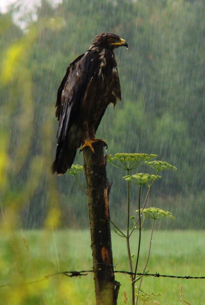 Beskrivelse: Denne fugl kom flyvende meget lavt over marken, og satte sig på pælen 10 meter nede ad en lille grusvej. Her blev den tålmodigt siddende mens jeg ivrigt "skød" billeder af den.