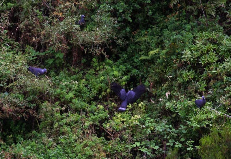 Her så jeg op til 10 Madeira-duer siddende og flyvende i træerne. De første 15 min. så jeg ingen duer - men efterhånden var der lidt bevægelse og så blev de spottet.