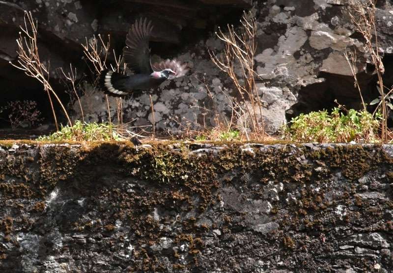 Beskrivelse: I bjergskovene på det vestlige Madeira er en levada der går fra Rabacal til Risco - den ender ved et vandfald med et fald på 100 m. Her så jeg op til 10 Madeira-duer siddende og flyvende i træerne. De første 15 min. så jeg ingen duer - men efterhånden var der lidt bevægelse og så blev de spottet. Der er meget mørkt ved vandfaldet, men fra middag og lidt frem falder der lidt lys ned i området. På levadaturen - var der også Madeira-fuglekonge og Madeira-bogfinke.