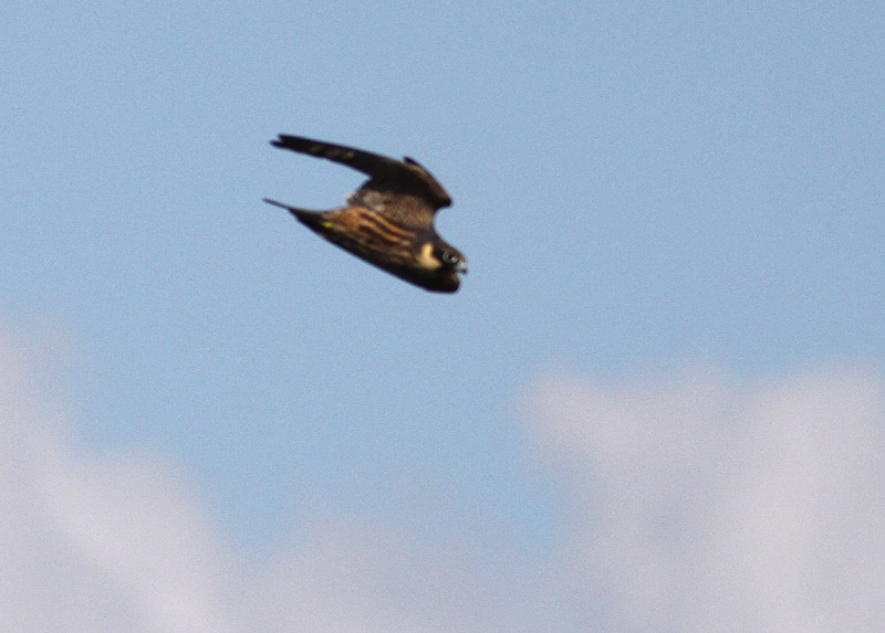 Beskrivelse: Sammme Eleonorafalk som tidligere diskuteret - forsøger at finde et foto hvor oversiden måske ses bedre. Der er efterhånden almindelig enighed om Eleonorafalk - tak til de, der gad kommentere. Pudsigt at fuglen passerede ganske uset forbi mange rovfuglefreaks på højene - men det var jo også en aktiv dag.