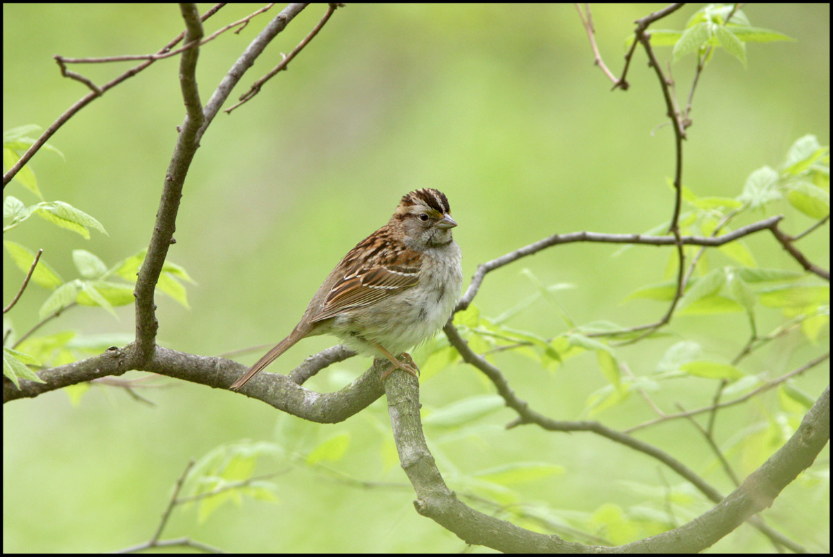 Titel: White-throated Sparrow- "Tan-stripped" individual