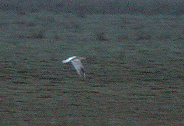 Beskrivelse: Et reelt doku-foto af en art, der formentligt ikke kan fotografes mere - og som har manglet i Netfugls galleri: Tyndnæbbet Spove. Det er snart 20 år siden at de sidste overvintrende Tyndnæbbede spover optrådte på stedet - i vintreren 1992/93 var der 2 eks., hvoraf det ene er dokumenteret i flugten her. Man kan ane det sorte, smalle næb samt overvingens storspoveagtige kontrast og den næsten hvide hale. Et foto af den stående fugl er desværre for umuligt til at lægge ud - dtete er slemt nok, men scannet fra dias, hvilket forringer kvaliteten.