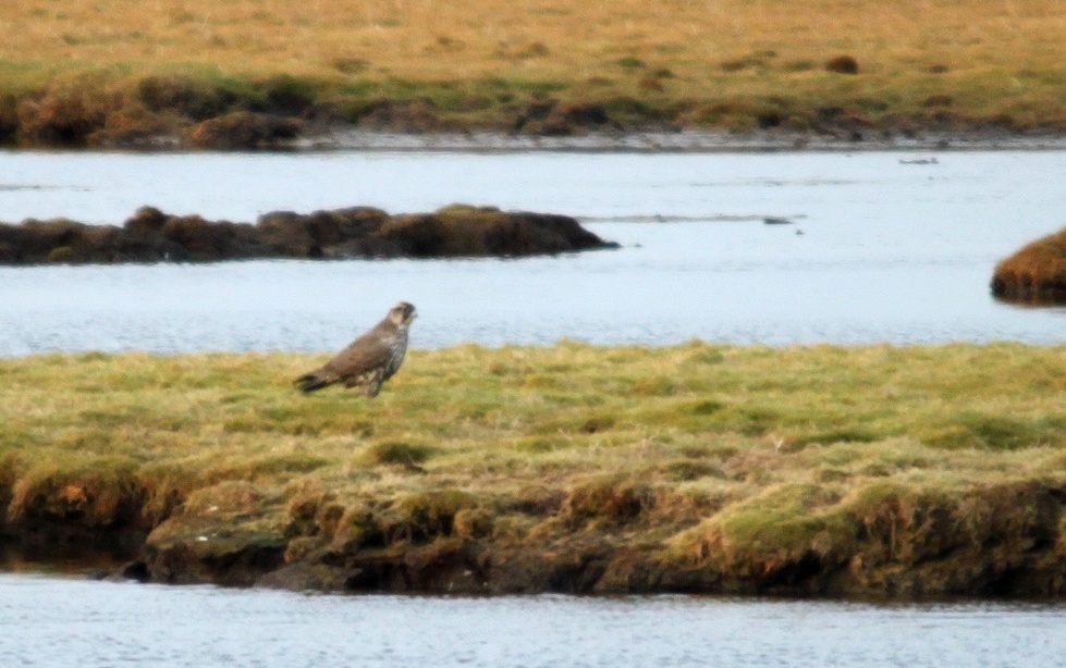 Jeg hæftede mig ikke specielt ved undervingens tegning, men måske gjorde nogle af medobserne (EO, RSN og MON). For mig adskilte denne fugl sig imidlertid markant fra de 2 vandrefalke EO og allerede havde set i omradet. Det gjorde den først og fremmest ved hele sin fremtoning - en meget større, kraftigere og tungere fugl med længere hale og en betydelig tungere flugt med dybere vingeslag - i det hele taget en anden måde at flyve på. I felten fremstod den heller ikke med så markante ansigtstegninger som en Vandrefalk (men dog mere end jeg havde forventet). Desuden viste den, da den satte sig på en sten, tydeligt sine blågra ben/fødder under nogle meget store og fyldige bukser.