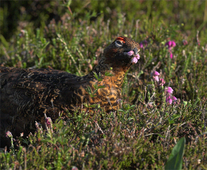 Titel: male ssp scoticus,fouragerende (Red Grouse)