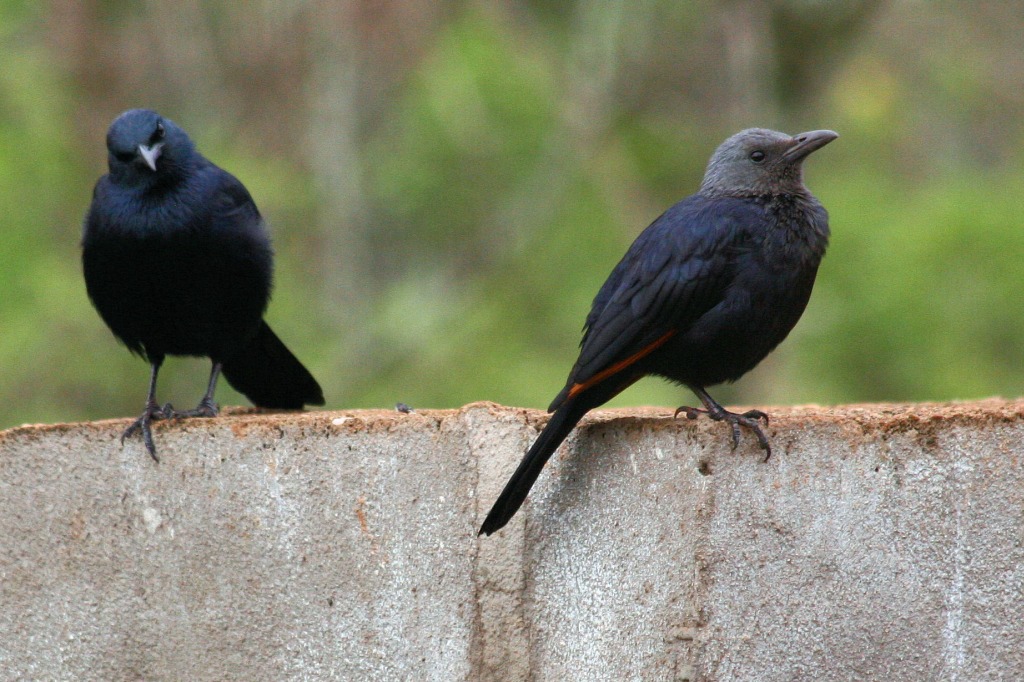 Beskrivelse: Rødvinget sortstær er sommergæst i Swaziland. Fuglene ankom første uge oktober, begyndte at kurtisere og en uge senere at bygge rede. Hunnen har gråligt hoved.