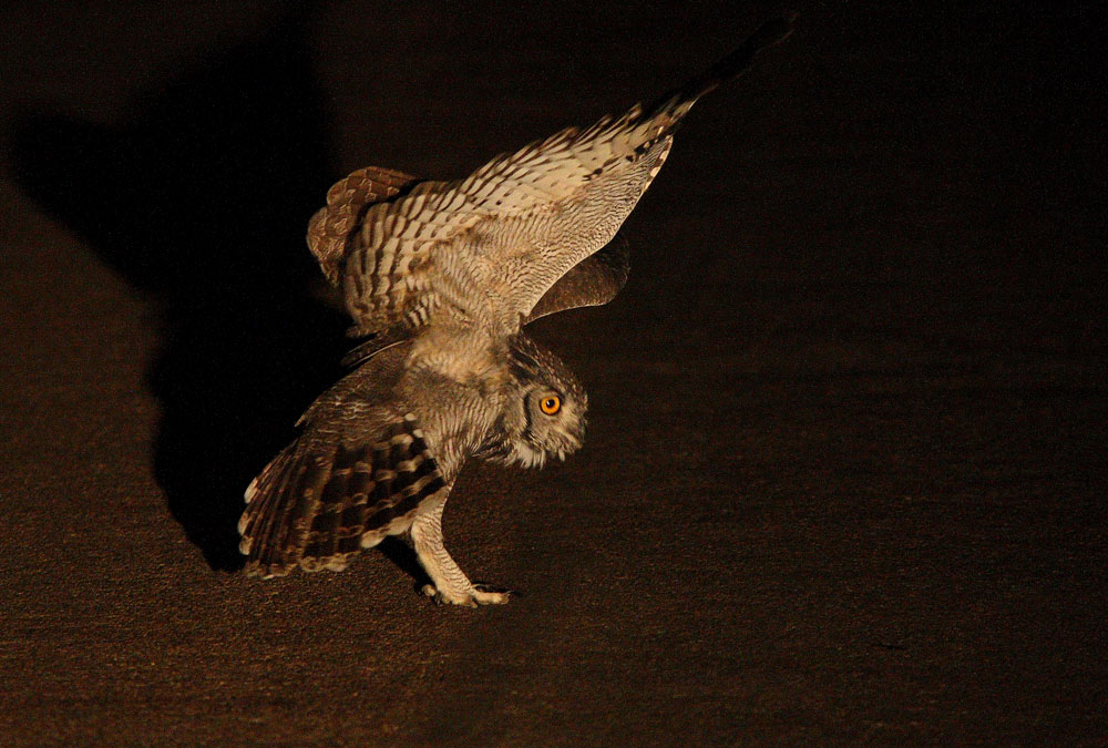 Beskrivelse: Billedet er taget fra en Jeep, på en natsafari, i lyset fra guidens kraftige lygte.