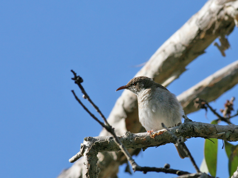 Beskrivelse: One of the least conspicuous of the many species of honeyeaters in Australia. A common species in mangroves and paperbark swamps where it builds its hanging nest over open water.