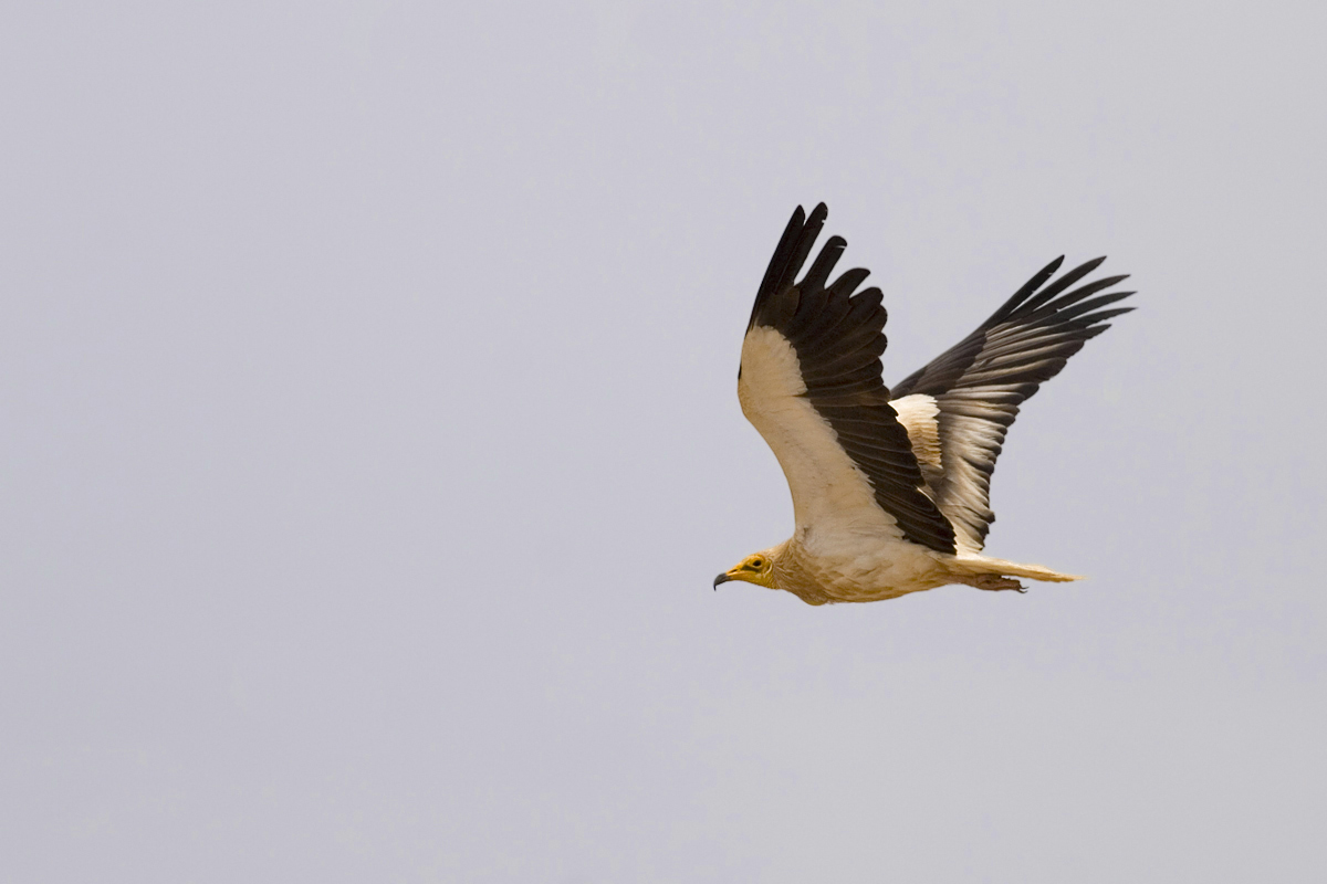 Dette fine billede af en Ådselsgrib viser en fugl af nominat racen, og ikke som angivet af racen ginginianus. Nominatracen kendes bl.a. det markante sorte spids på det gule næb. Racen ginginianus er en indisk fugl, og den har ensfarvet, gulligt næb.