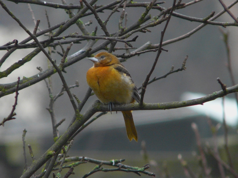 Beskrivelse: Picture of the first winter male baltimore oriole which lingers in Alkmaar, Netherlands since december 2009.