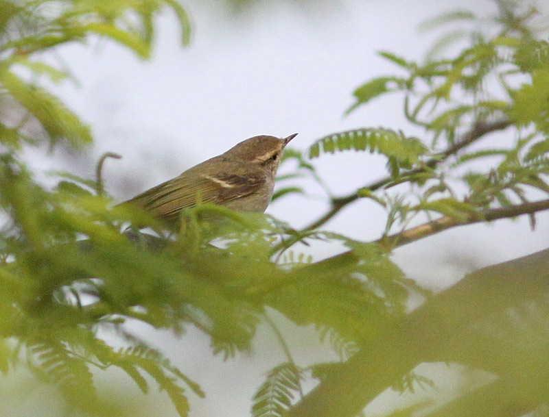 Beskrivelse: Observeret i pæne antal rundt omkring i Delhi-området, og altid med det samme kald: "tse-o-liih", som er artens almindeligste kald. Kun få gange hørtes det mere hvidbrynet løvsanger-agtige kald, man undertiden høres på trækket,og i øvrigt i områder, der ligger tæt på Hvidbrynet Løvsangers udbredelsesormåde, f. eks. i Østnepal.