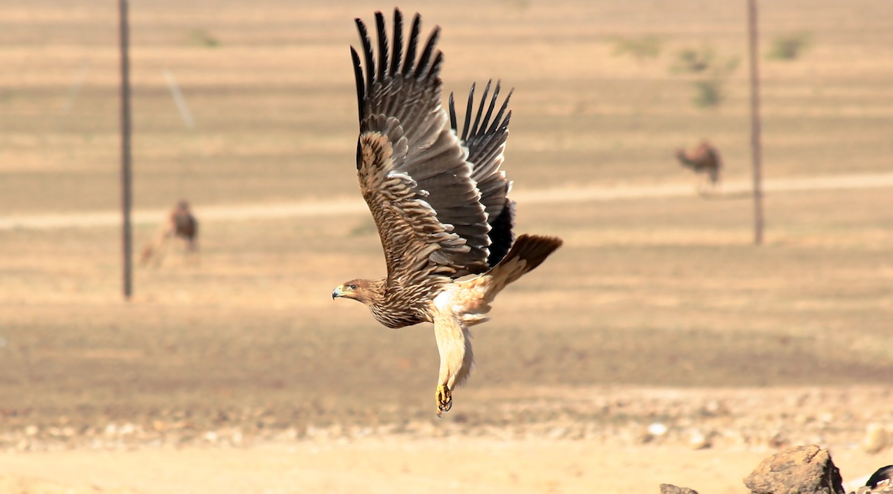 Beskrivelse: Denne kejserørn og 8 steppeørne dukkede pludseligt op på vejen op til Ayn Hamran.