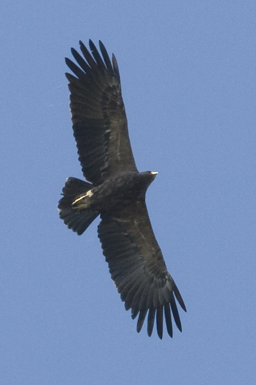 Fuglen ser lidt mørk ud på undersiden, men det skyldes nok at undersiden er i skyge og dermed underbelyst. Ellers syntes jeg at den ligner en helt almindelig adult lille skrigeørn. "Dobbeltkommaet" er næsten usynlig på denne fugl, men det er ikke usædvanligt på gamle fugle. P.S. til den kritiske: denne fugl er en adult eller næsten adult . I den alder har stor skrigeørn en tydeligt længere 7-er.