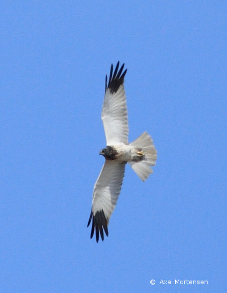 Beskrivelse: Denne kærhøg (?) passerede Hellebæk Avlsgård i stor højde - først sent blev de tilstedeværende opmærksomme på, at den havde en atypisk hovedtegning, så det lykkedes ikke at bestemme den.