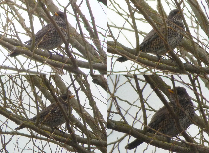 Beskrivelse: We found this fascinating thrush in the company of 6 Ring Ouzels. A hybrid Ring Ouzel x Fieldfare, "just" an aberrant Fieldfare or something else??