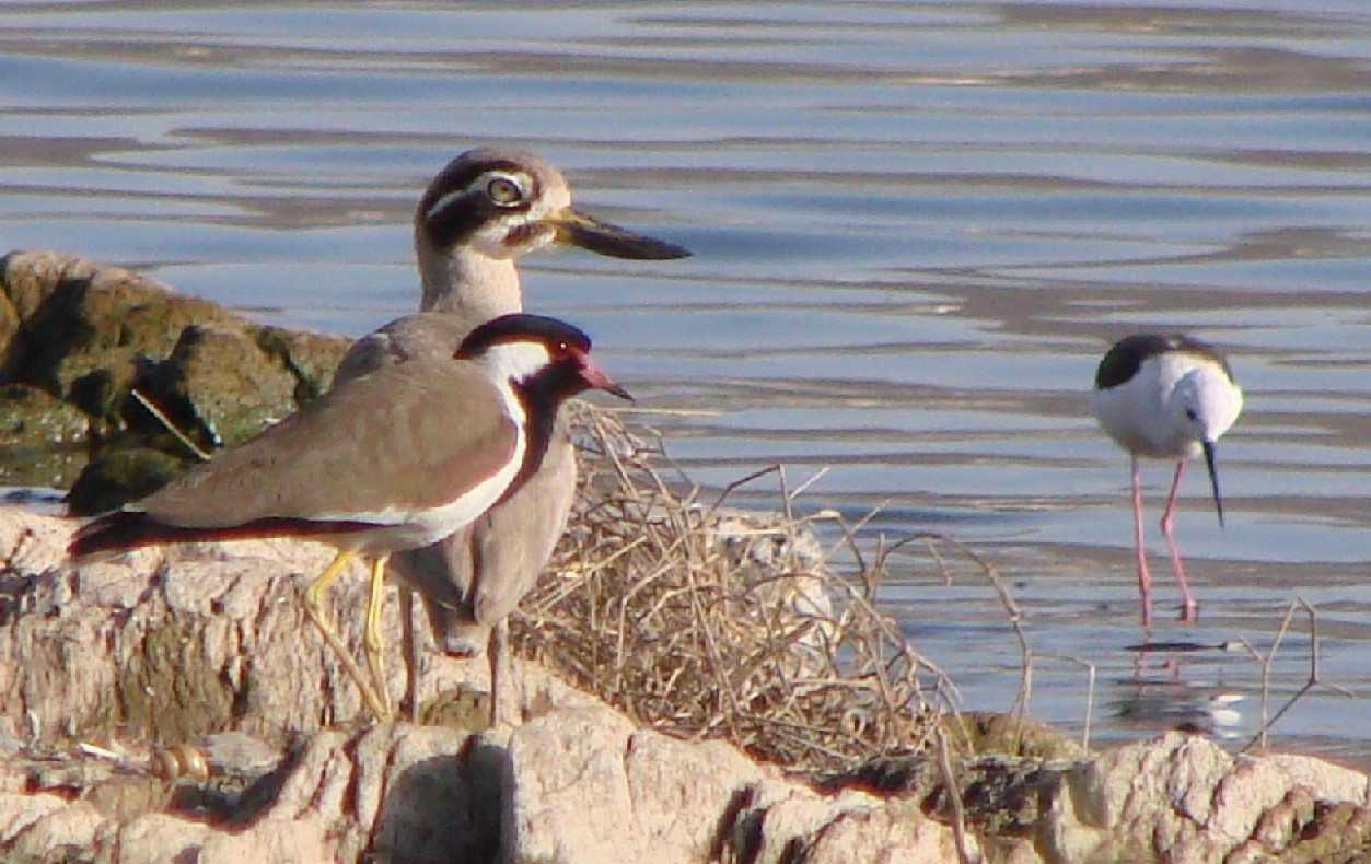 Beskrivelse: plus en Stylteløber - (Himantopus himantopus) - Black-winged Stilt og en Stor Triel(Esacus recurvirostris) Great Thick-knee.