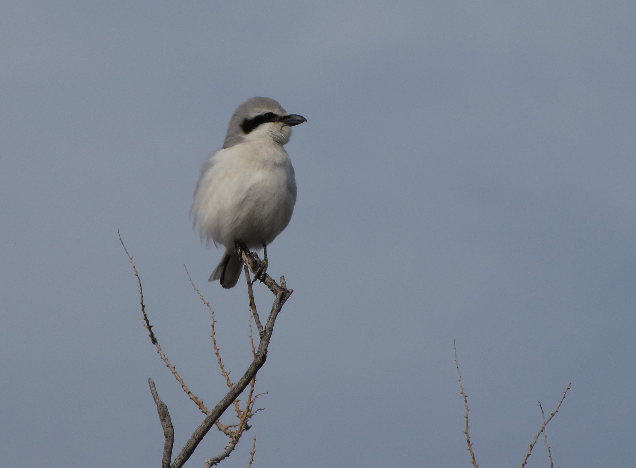 Beskrivelse: Steppe Grey Shrike, Steppetornskade Lanius (meridionalis) pallidirostris. As with many other Central Asian species there might be considerable geographical variation among the Lanius excubitor-meridionalis-pallidirostirs complex. The photographed bird shows extensive white supercilium above black mask ending past ear ear-coverts and narrow band on forehead. No… obvious pale areas on bill, which might be surprising? Pale grey shrike without any rufous-pinkish in plumage; apparently pallidirostris sometimes shows pinkish under parts (Rasmussen, P.C. & Anderton, J.C. 2005. Birds of South Asia. The Ripley Guide. White scapulars and white carpal patch and extensive white edges on secondaries were seen well on the present bird. Steppe Grey Shrike Lanius pallidirostris. Rare resident to scarce breeding migrant in southern half of Kazakhstan with a range stretching from west within WP-Europe at the Volga-Ural semi-desert region to East Kazakhstan along the border to China in the Alakol region at Dzhungarskyiy Alatau. Inhabit the Central Asian southern desert and Kazakh semi-desert. Source: Wassink, A and Oreel, G J 2007. The Birds of Kazakhstan. De Cocksdorp, Texel. Depending on literature consulted its status range from West to East as well… By some considered conspecific hence an ssp of Great Grey Shrike (Lanius excubitor), but most often considered full species. A classification somewhere between Lanius excubitor and Southern Grey Shrike Lanius meridionalis seems to be fair, at present – I upload it within the latter context. Some geographical variation seems to be evident. 18. April 2010 was a great day in the desert on the southern shore of the huge Lake Balkash. We were in the middle of the desert. The night had been beautiful with sprakling stars, far away from any city but cold – there were ice on the tents in the morning. Luckily I brought my polar sleeping bag used for the Snow Leopard Expeditions in the mountains. It can be cold in the desert in April… In few months its almost incredible hot here – impossible sleeping in tents and suicide in such an sleeping bag The area where we made camp is the hot spot for Panders Ground Jay, and those travelling with me in summer KAKI 2007 for sure remember this area – and at that event, in 2007 we found Panders, and the same travelers probably also remember my frustration as I was the only one in the party that dipped the Panders. That evening was NOT funny – except for all the others. I dipped the Panders as I walked 180 degrees wrong direction (to increase the search area…). But the Asian Desert Warblers were great – almost as great of those pics the other got of the ugly Panders… 2008 the birds were absent but to make it even more “funny”… 2009 provided the same bird and the same case – on the same spot. EXACTLY – same bushes/trees as in 2007! At that occasion I already was baptized Anti-Pander by Mosehår (VERY funny…). I heard the Panders in 2007… and I have the Kazakh Panders on my list NOWADAYS, but I had to go back… In 2007 the pallidirostris played the dark horse in the Panders-gate. The Panders had been present for almost half an hour. Perching in a little tree, flying to and from the ground, and when I finally arrived at the crimescene, the bird had left the branch for its ground business, but I was re-assured it has done the same dozens of times in the last MANY minutes. Up the bird came again, BUT this time it was not the Panders but a pallidirostris. We never saw the Panders anymore that day... Sometimes birding is a cruel sport…as watching soccer: Denmark-Spain. DON’T MENTION THE WAR! … ANYWAY 18.April 2010 was a great day. The morning brought excellent birding with singing Asian Desert Warblers, Desert Wheatear, Isabelline Wheatear (the most talented artist herearound in song) and halimodendri-Lesser Whitethroat. The pallidirostris were singing too; actually deliberate. It perched in top of trees and bushes, in what I suppose were its territory. In these areas prime breeding habitats are scarce (e.g. the Long-legged Buzzard Buteo rufinus, makes its huge bulky nest in bushes 1, 5 meter above the ground; in lack trees) and the territories fairly small; the photographed birds territory were approx. 100m x 100m. Usually sightings of pallidirostris are few, but when prime habitat is found, it’s among the most common desert birds. This morning the pallidirostris gave excellent sightings and was great to study – almost as good as the Pallas Sandgrouse (but those sightings of the sandgrouses were from another dimension and almost out of this world this morning, but this is another story)