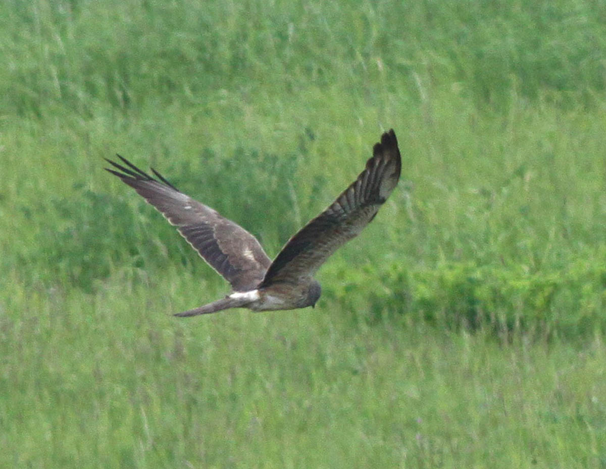 Beskrivelse: Bør være Hedehøg pga. markante sorte vingespidser og mørk bagkant på hånden. Desuden stort set manglende lys halskrave på dette fældningsstadie, hvor gråtonede fjer er indblandet i brune på hoved, hals og forbryst (2k han).