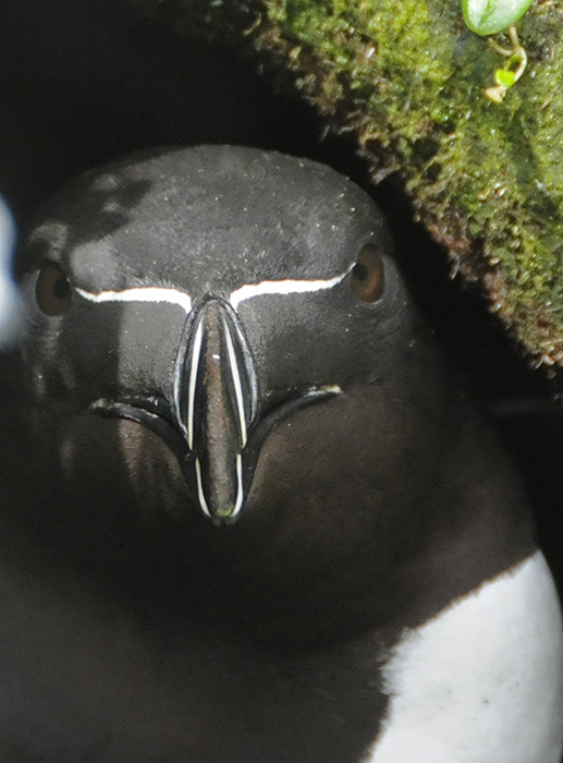 Beskrivelse: Alk i udgravet hul i græsdækket på en temmeligt utilgængelig ø i øgruppen Satsissunguit,Vestgrønland.