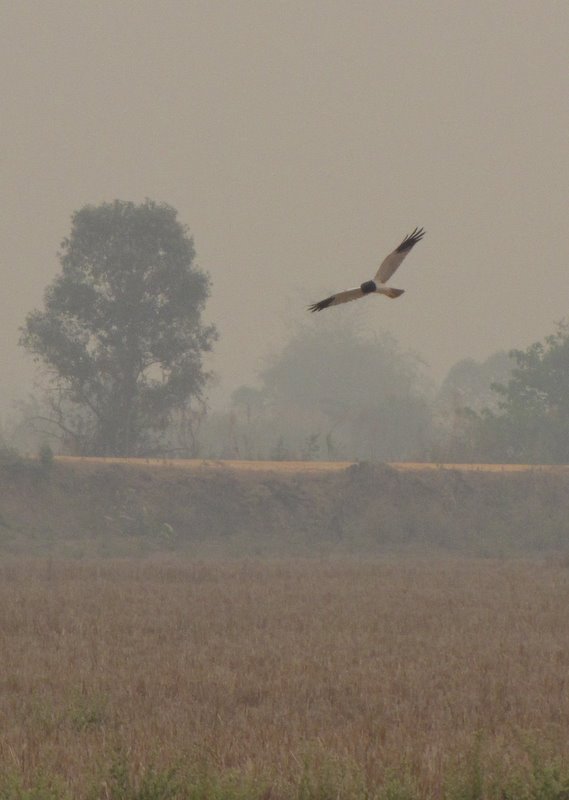 Beskrivelse: Magisk solnedgangsstemning i de tørre rismarker ved Thaton, med flere fouragerende Pied Harrier, Stribet Græshoppesanger trådt op fra grøft, syngende Lille Sanglærke, Pintail Snipe, Storpiber og 50+ Citronvipstjerter på overnatningstræk!