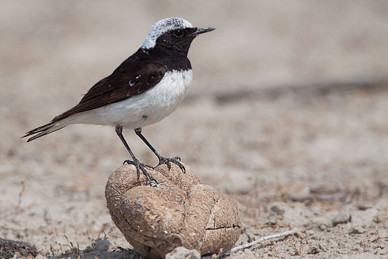 Beskrivelse: Han af nonnestenpikker. En lille fugl på en lille lort.