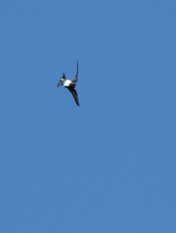 Beskrivelse: Modsat Purple Martin i Nordamerika og Cuban Martin i Cuba er hannen ikke ensfarvet blåviolet, men har tydelig hvid underside.