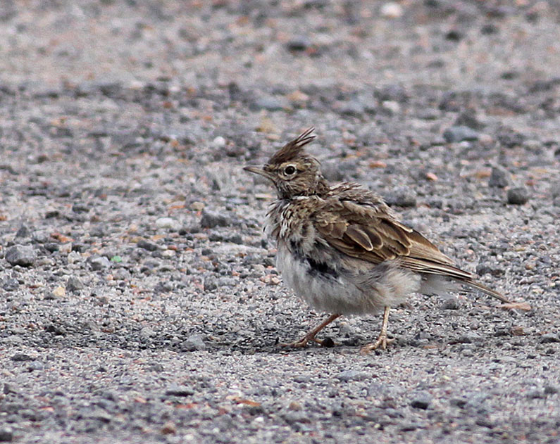 Beskrivelse: Denne Toplærke opdagedes idag, søndag 15.8 2010, ved Bech/Studsgaard-terminalen i rønne Havn, ved opfyldningsområdet. Det skulle være øens første Toplærke i 10 år.