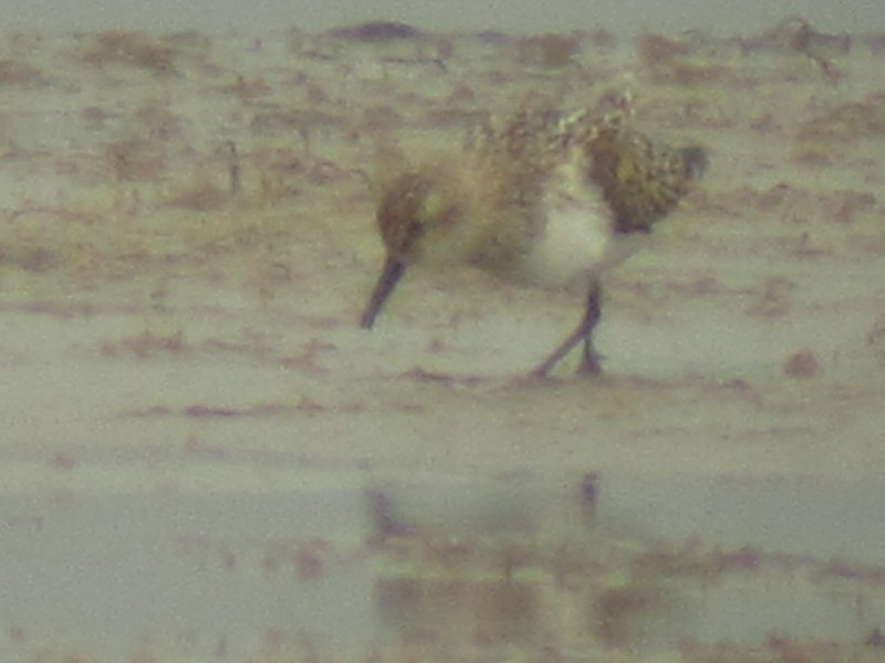 It might not be obvious in the photos, but in life the proportions of the bird were very ROUND, SHORT-NECKED and somewhat LARGE-HEADED, and also the jizz reminded some of the observers of a Broad-billed Sandpiper.