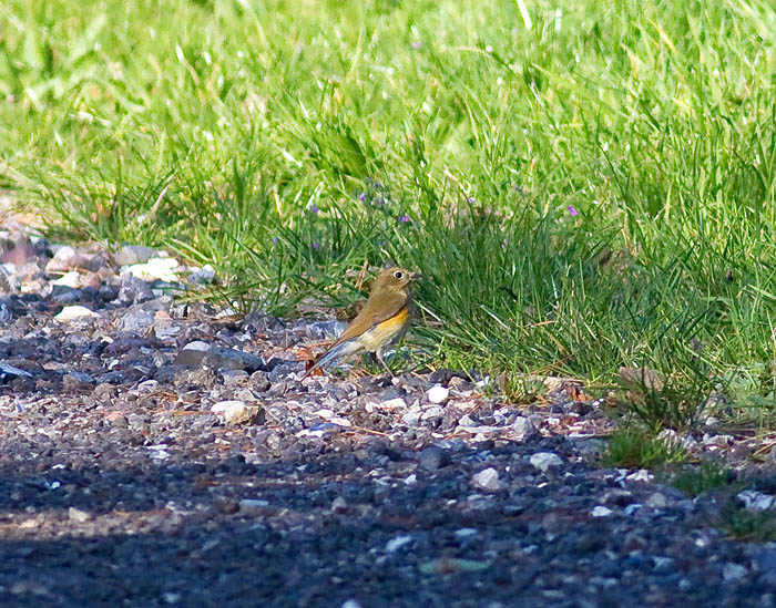 Måler man på Googleearth er der tale om 450 m. i luftlinie mellem de to adresser. Måske sad fuglen der mellem 07 og 09, for siden at forsvinde - lige som med sidste års sortstrubede jernspurv i Viarps Mosse, der kun var fremme i allerførste daggry, den næste dag.