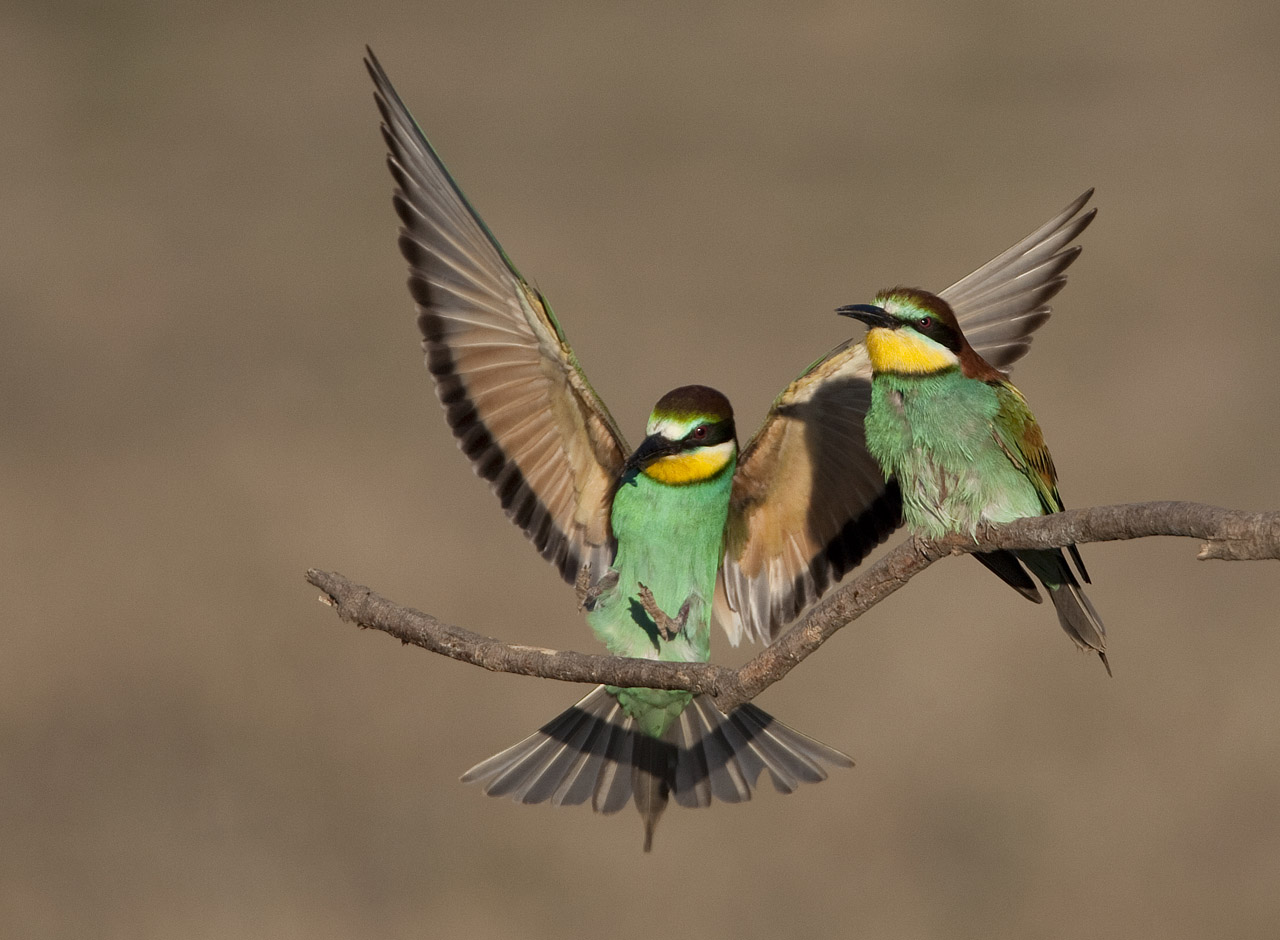 Flot billede med herlig action. Og bemærkelsesværdigt så markant de blå nuancer (som man ellers normalt tydeligt ser på Biæderens bryst) er fraværende på dette foto. Opfattedes fuglene også sådan i felten Klaus ?