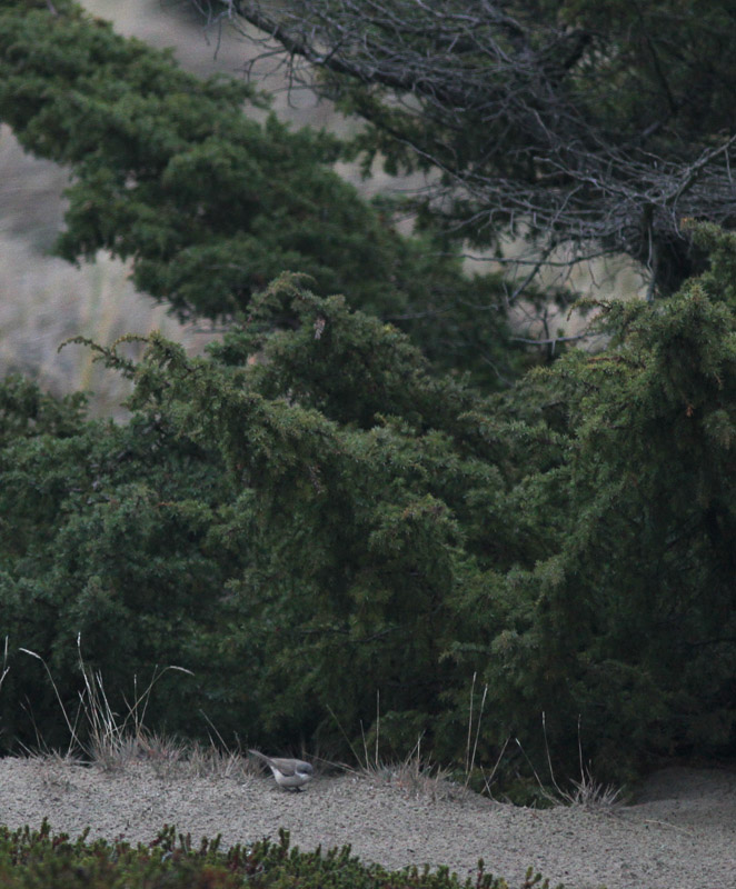 Beskrivelse: Called once during a total of about one hour observation time; a harsh rattle reminding of both Great Tit and Sardinian Warbler. Seemed well established in the Anholt "Desert", feeding frequently on the ground.