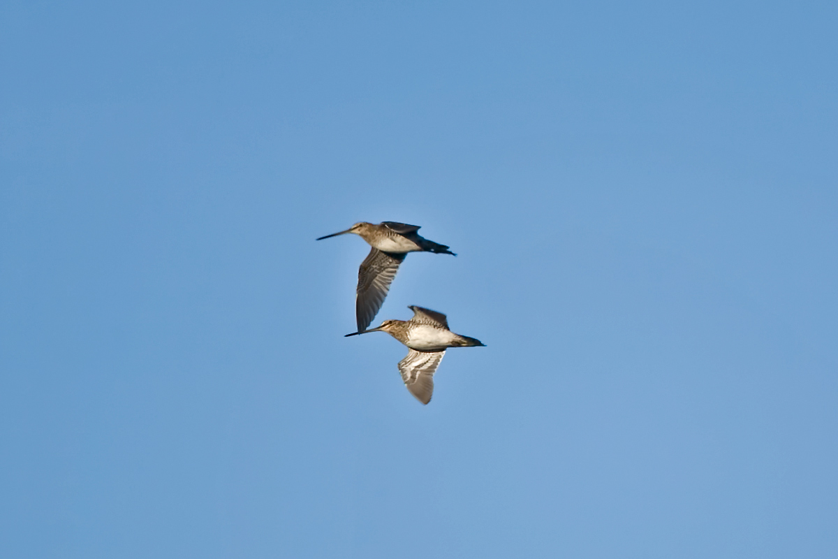 Following publication of two flightshots a discussion of whether one of the birds (with a very dark underwing and neglible white trailing-edge to the secondaries), could indeed point to the american form Wilson's (delicata) or possibly even a Pintail snipe.