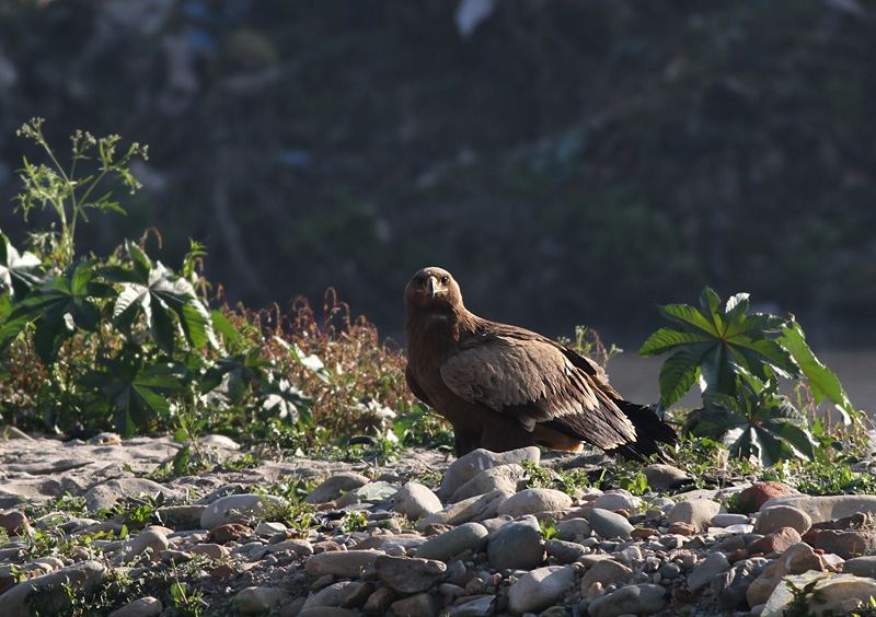 Beskrivelse: Steppe Eagles migrate south through the Kathmandu Valley from October to December. Some of them come down to forage on the outskirts of the city. They go down to search the rubbish that is spread in the immensely polluted Bagmati River. Unfortunately the main water supply in the valley is being used as a floating rubbish dump.