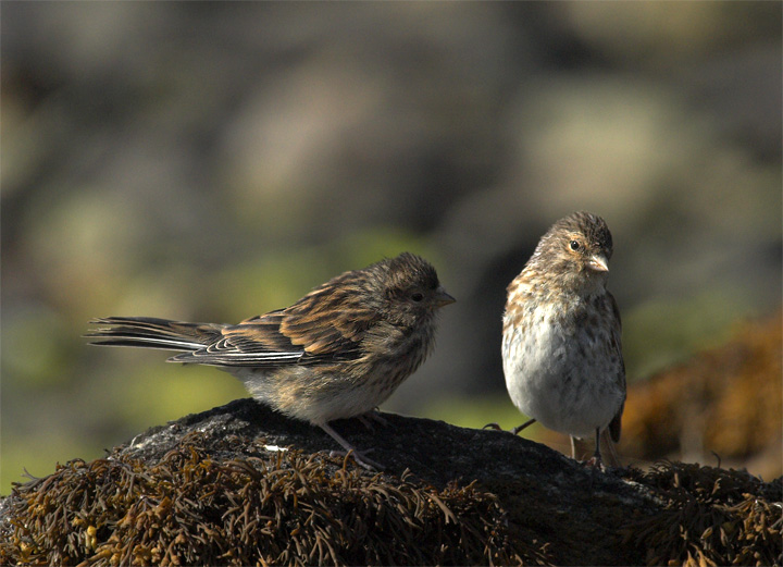 Er blevet i tvivl,om fuglen til venstre er en ungfugl - tænkte blot,at den i så fald nok ville være mere kanelgylden på kind/strube og på kroppen med lidt kraftigere og bredere stribning.