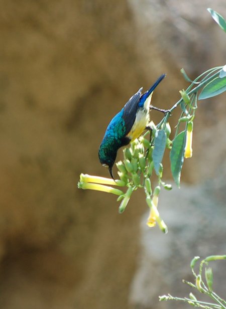 Beskrivelse: Sol, solfugl og blomster - ikke så tosset.