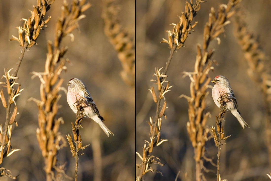 Holdt til sammen med nogle få Store Gråsiskener og en flok på ca. 25 Bjergirisker.