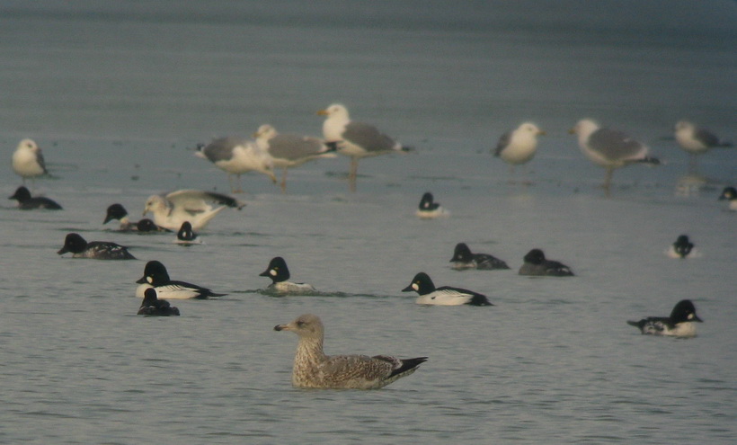 Beskrivelse: Least 6 birds together!!! On the pic a second-winter bird and background 1 ad. second from left together with Caspian Gulls and Common Gulls.