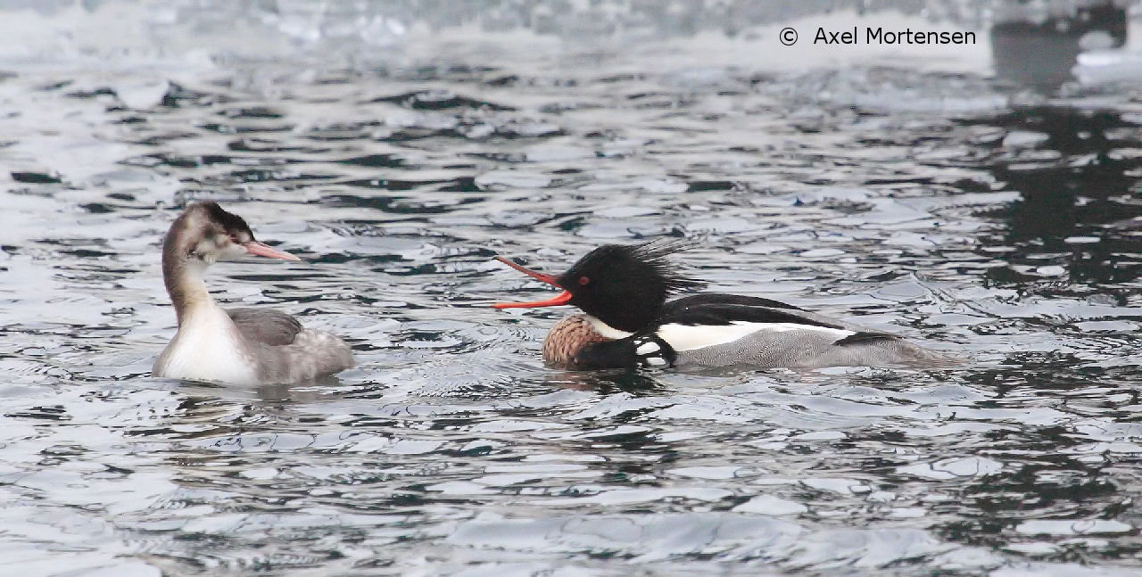 Men, på min skærm, og i mine øjne, forstørret og nærstuderet, så har denne lappedykker ikke lyst, men rødt øje. Det er ganske typisk at det røde ikke fremstår særligt tydeligt i skygge og i gråvejrslys. Der er naturligvis ikke tale om rødt, som på en solfyldt Sorthalset, men det ligger helt inden for normalen af, såvel adulte, som 2K toppede på denne årstid... Jeg tænker du og din lup måske har fokuseret på de reflekser der ses i øjet.. ? - dem opfatter jeg ej heller som røde..