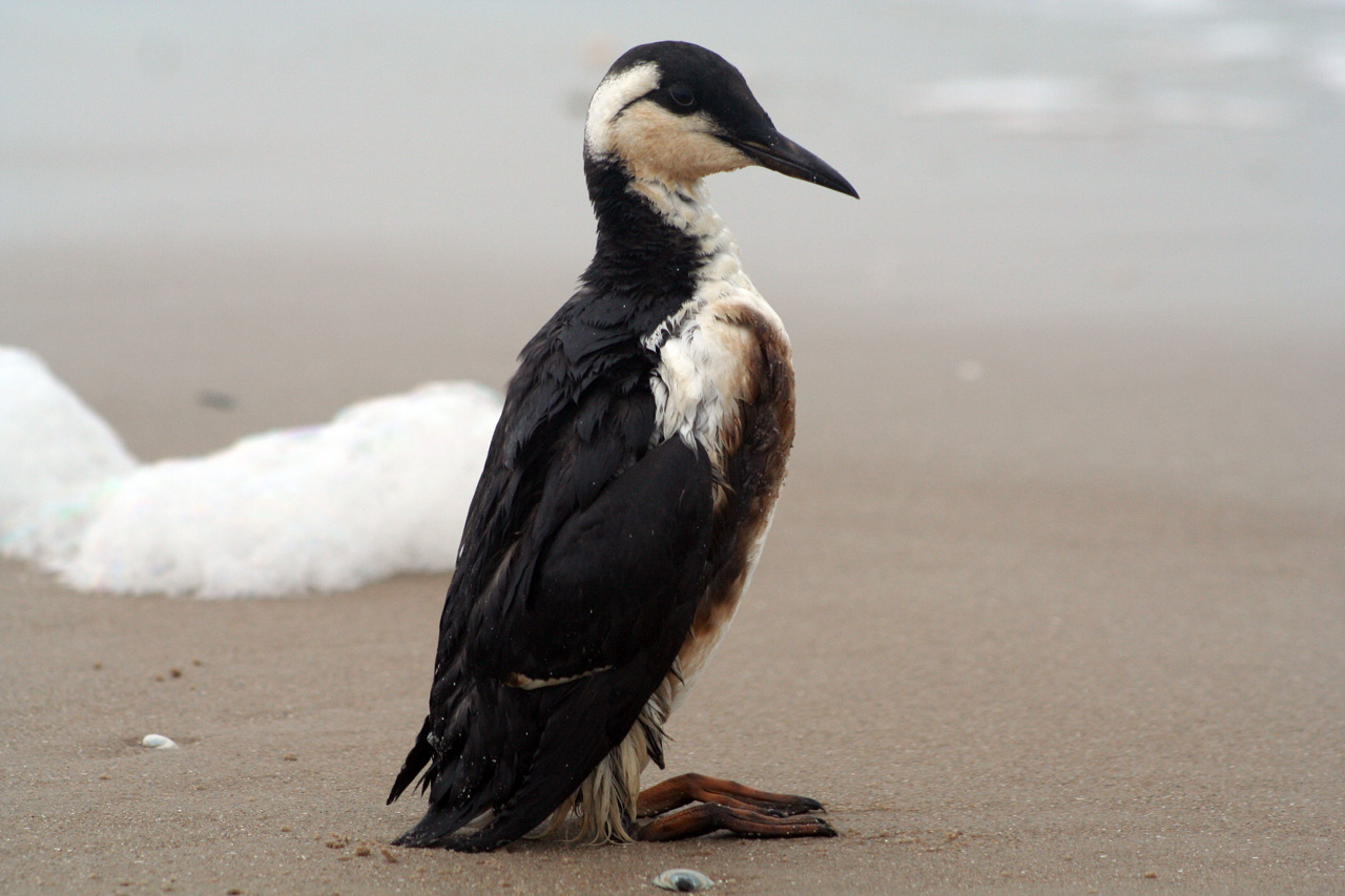 Beskrivelse: Vi fandt fuglen stærkt forkommen på stranden. Efter store overvejelser om hvordan og hvem der skulle gøre det af med den stakkels fugl, kom en jæger med en jagthund os til undsætning. Hunden blev sendt afsted og uden at lomvien gjorde forsøg på at flygte, gjorde hunden det hurtigt af med fuglen. Trist skæbne for en smuk fugl.