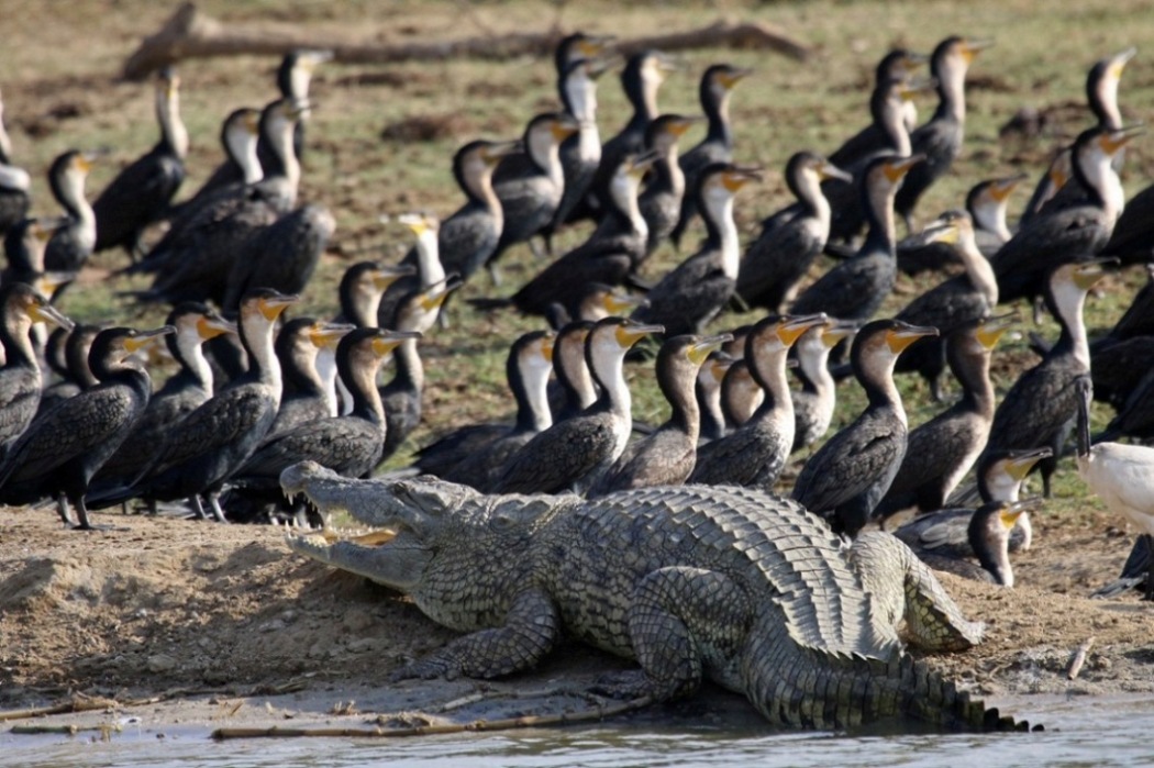 Nå, der fik jeg blandet kortene forkert. Den store gruppe af meget store krokodiller så jeg på bredden af Nilen nedenfor Murchison Falls. Krokodillerne jeg så i Kazinga Channel var også store, men jeg så kun enkelt-individer.