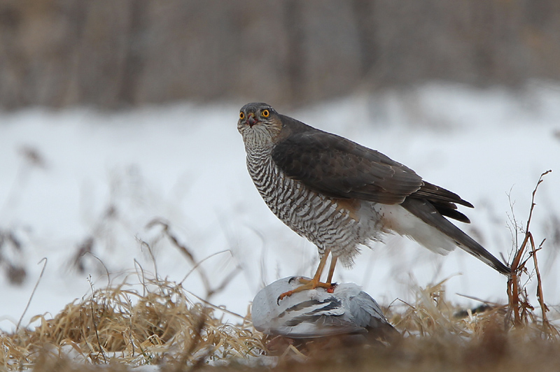 Når høgen sidder med en Tamdue som her, er der jo ingen tvivl om kønnet, da hannen er langt mindre.