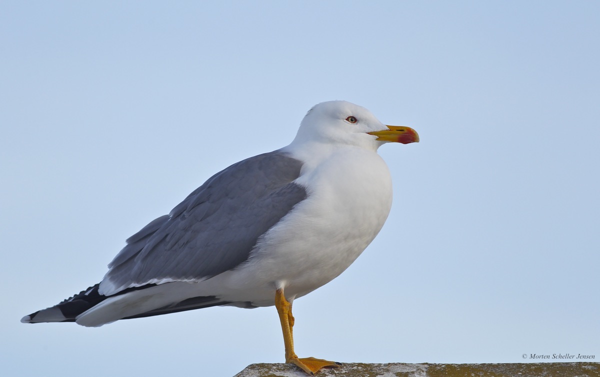 Beskrivelse: Bemærk det røde felt går op over undernæbbet.