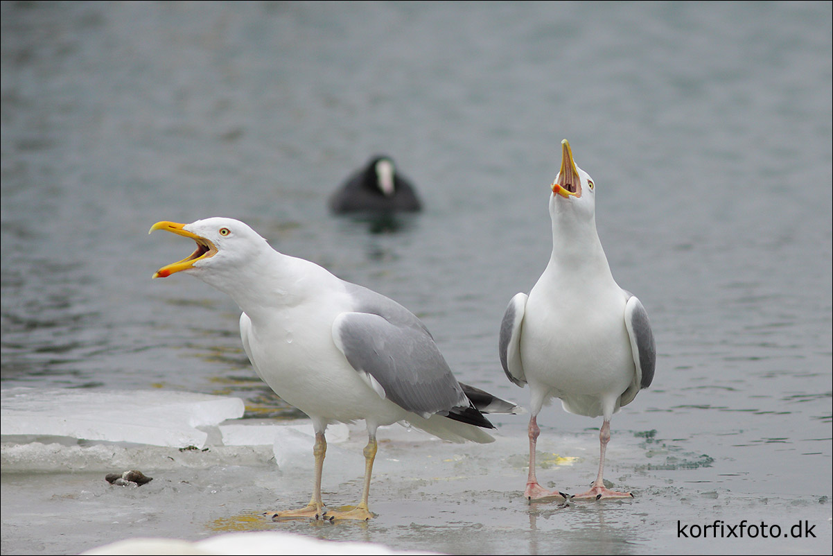 Beskrivelse: Der er stor forskel på farven, af fødderne på de 2 sølvmåger!
