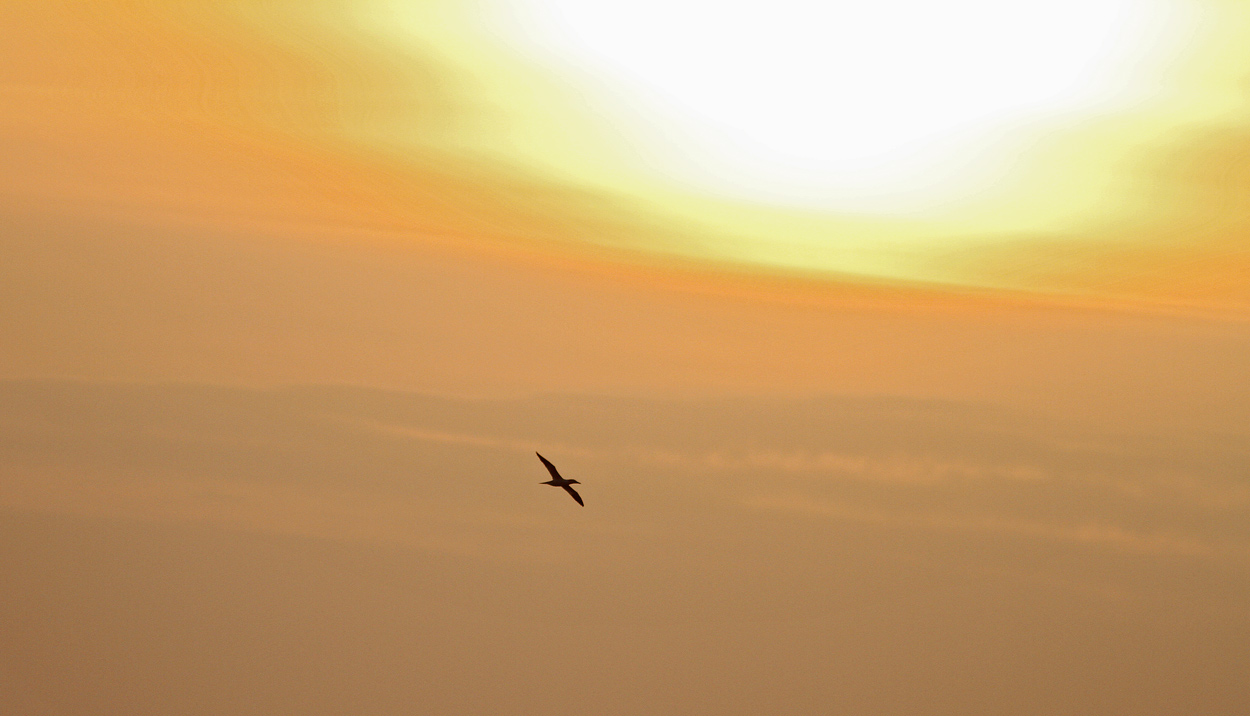 Efter at jeg har ventet lidt, får jeg øje på en Sule der flyver rundt længere nord på.